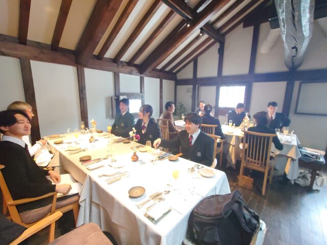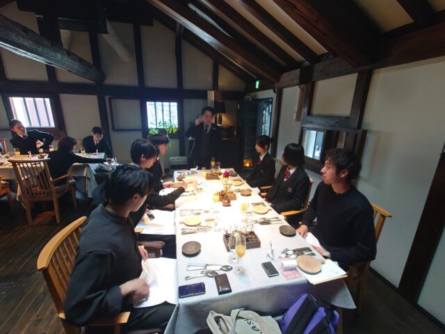 地元信州の食材を活かした繊細で美しい一皿一皿に、生徒たちは驚きと感動をもって向き合いました。料理の味わいはもちろん、盛り付けやサービス、空間づくりに至るまで、“プロの仕事”を五感で学ぶ貴重な機会となりました。