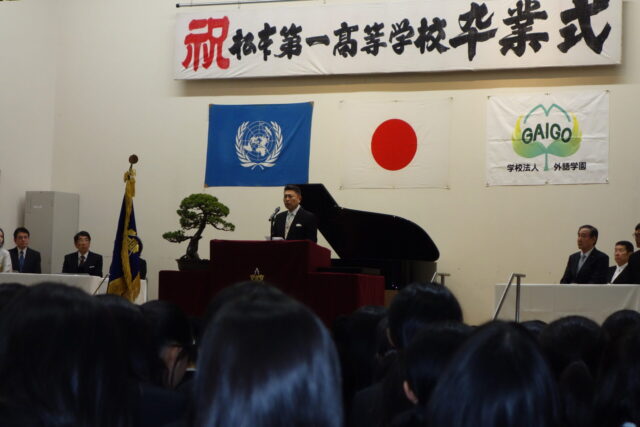 卒業式は厳粛に行われ、多くの方々から素敵なご祝辞をいただきました。その中でも卒業生、保護者、教職員の胸に刺さったのが遠藤恵美PTA会長からの卒業生に向けた言葉でした。