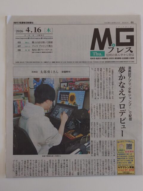 またひとりプロの漫画家が誕生した。本校美術工芸系列のOBペンネーム・太郎勇ミ氏が少年ジャンプアプリ「少年ジャンプ+(プラス)」で読み切り作品が配信されデビューした。当面は読み切り作品を中心に描き、いずれは連載作品を描くのが目標と語る。みんなで応援しよう!